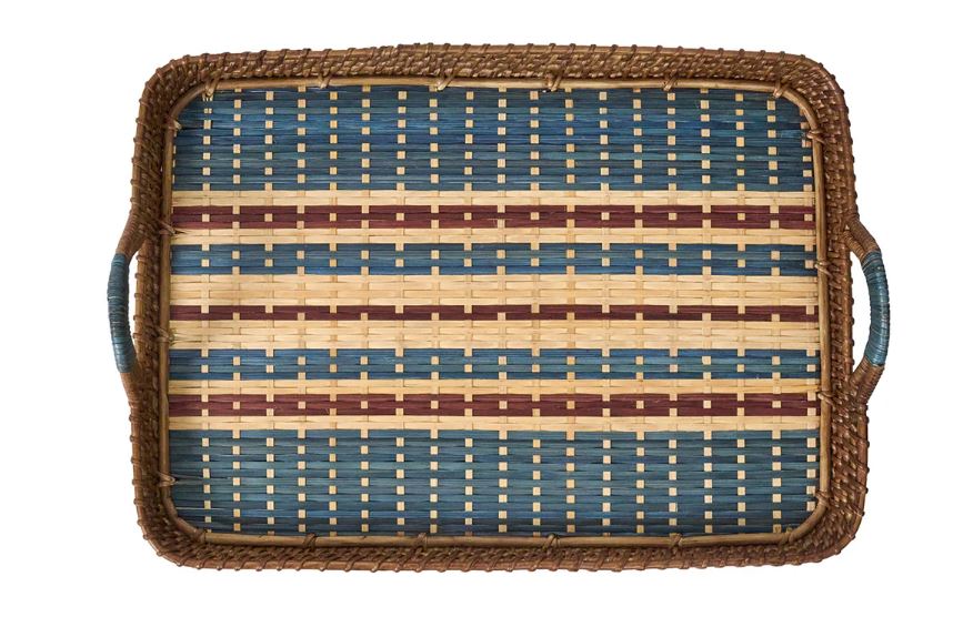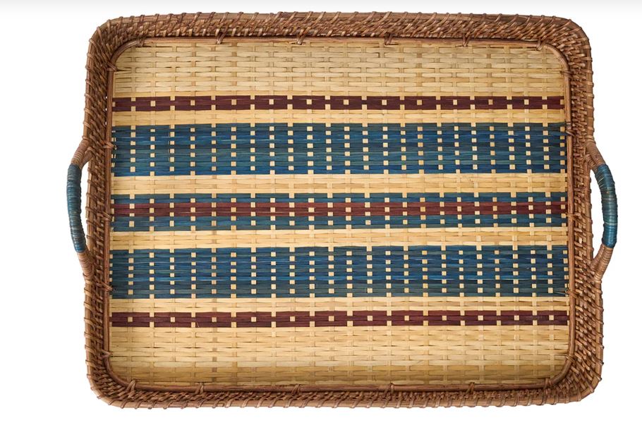 This beautifully handwoven serving tray is made of natural cane wood with stripes in neutral colors inspired by Scandinavian design. Perfect for serving hors d’oeuvres or even spoiling someone with breakfast in bed!