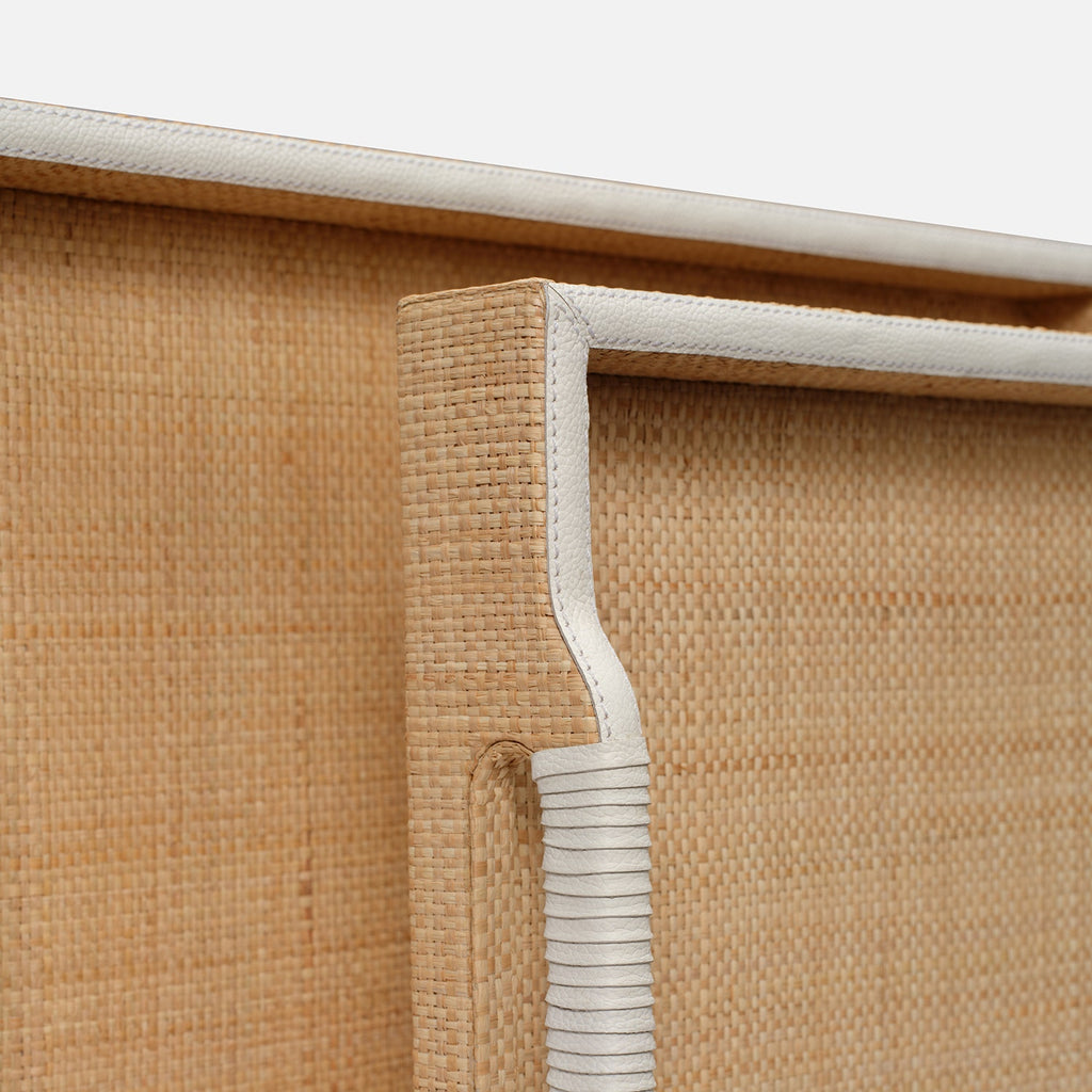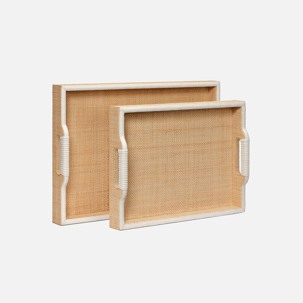 Constructed from tightly woven natural raffia and finished with a solid, bold border. Our Hammet trays are perfect for organizing those must-haves within reach, or for stacking on top of one another as an artful, understated centerpiece. Choose one for the perfect addition to your space, or both to compliment each other.