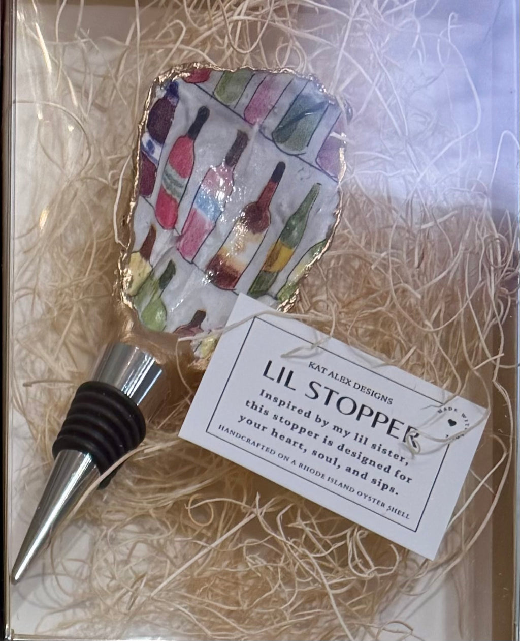 Seal your favorite bottle in style with this coastal-inspired bottle stopper from Lil Dish, handmade by local artisan Kat Alexander. Topped with a real oyster shell featuring a unique decoupage design and gold edging, each piece is a miniature work of art that brings seaside charm to your bar cart or table.