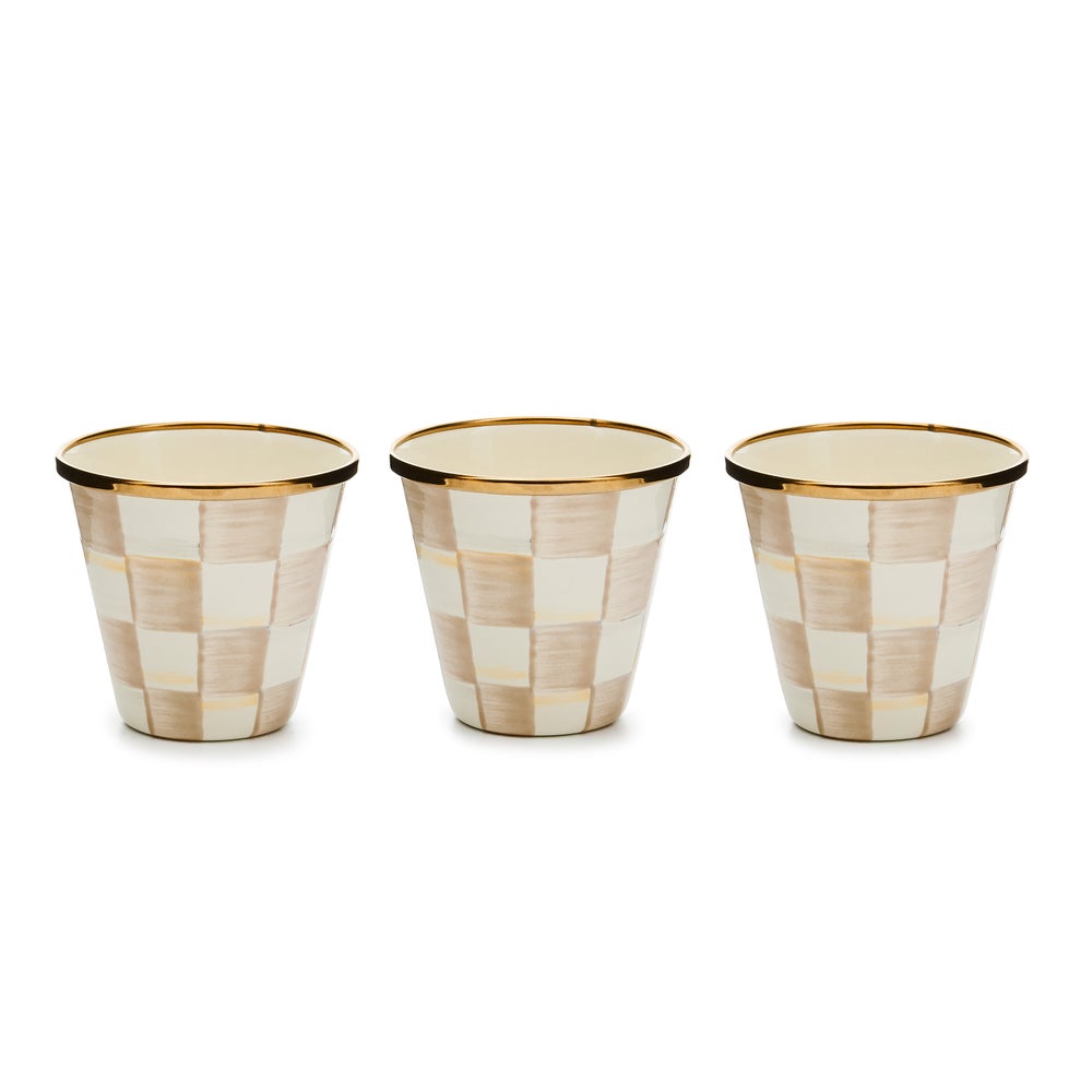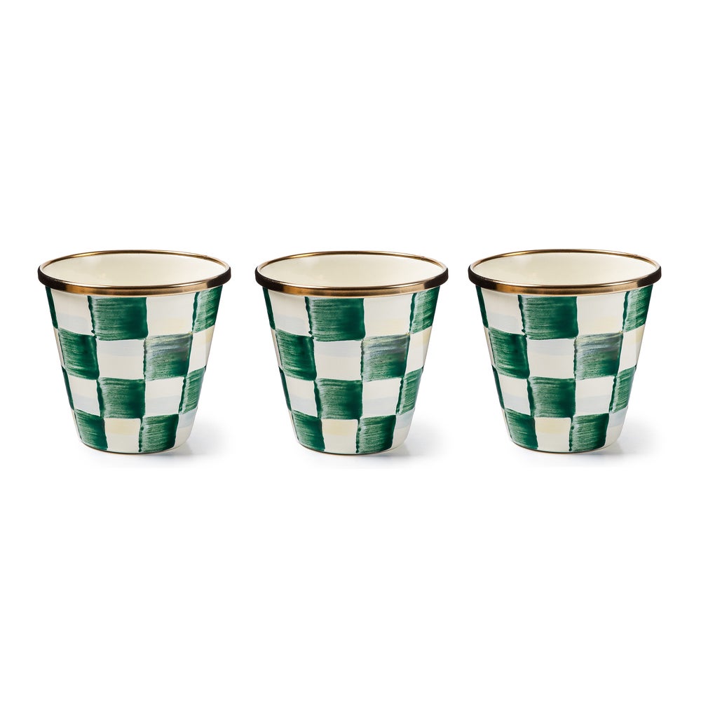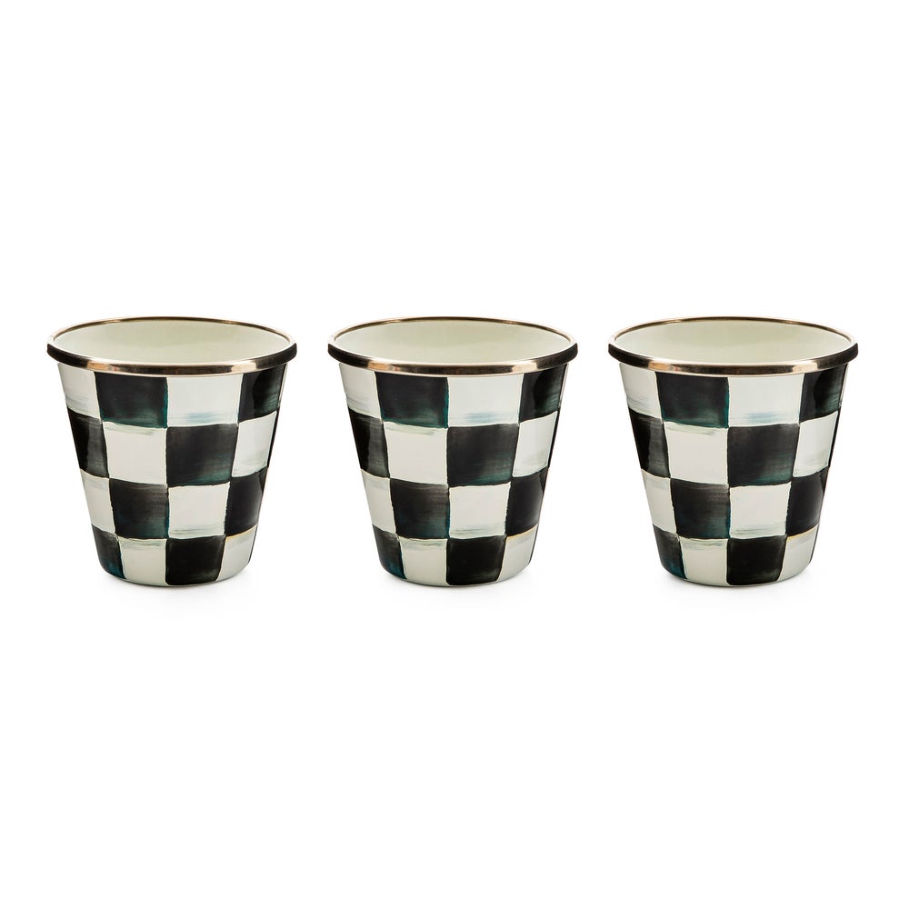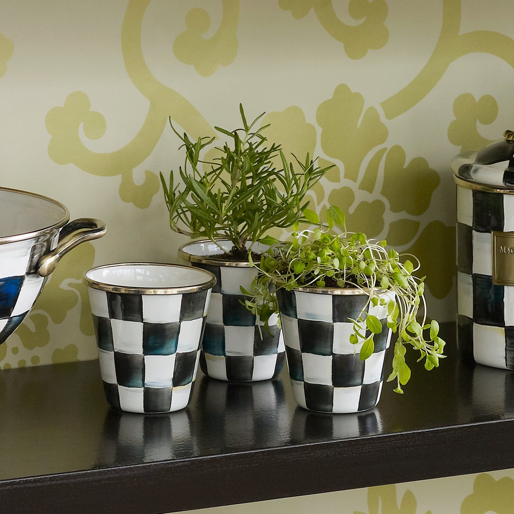 A favorite addition to the Courtly Check® enamel collection! A petite Enamel Herb Pot—hand-painted with color-dragged checks—is just the right size for a miniature kitchen herb garden! These make fun party favors, place card holders (fill with pebbles or candies and add a garden plant marker or seed packet) or even sorbet dishes. The ideas are endless.